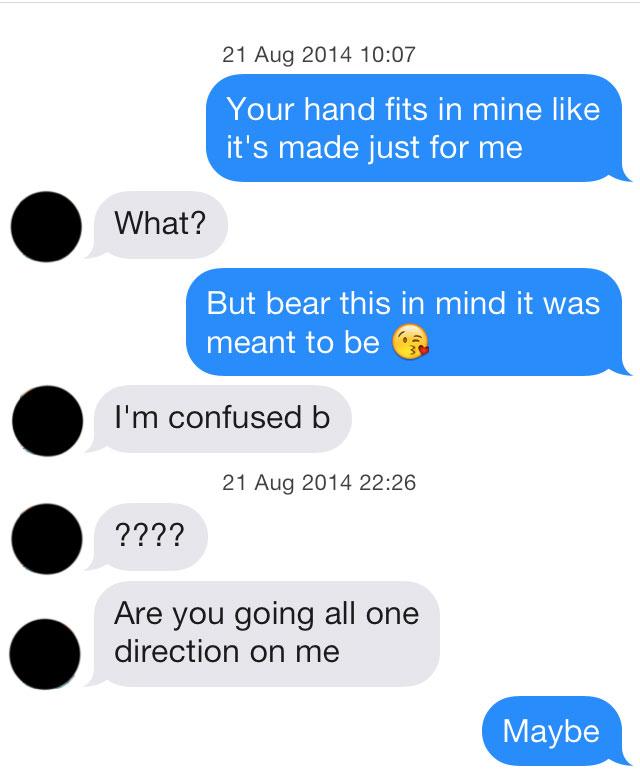 ٹوئٹر Seventeen Twitter پر This Is What Happens When You Use One Direction Lyrics As Pick Up Lines On Tinder Http T Co Hwbq7ywvyh Http T Co H3t5h69huf